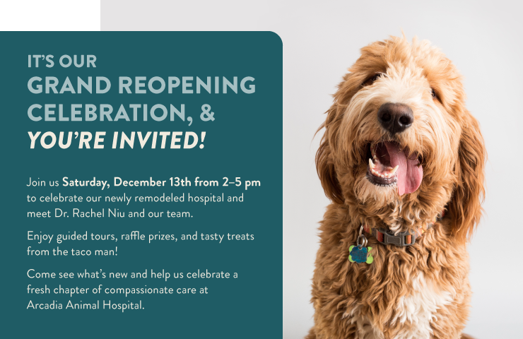 Under the guidance of new owner Dr. Rachel Niu, Arcadia Animal Hospital is pleased to offer a comprehensive approach to pet health that involves a team of talented and caring animal lovers devoted to your pet’s specific needs. Our friendly and supportive staff genuinely care for your companions and are excited to partner with you in supporting your pet’s best life. We look forward to meeting you and your furry family members!